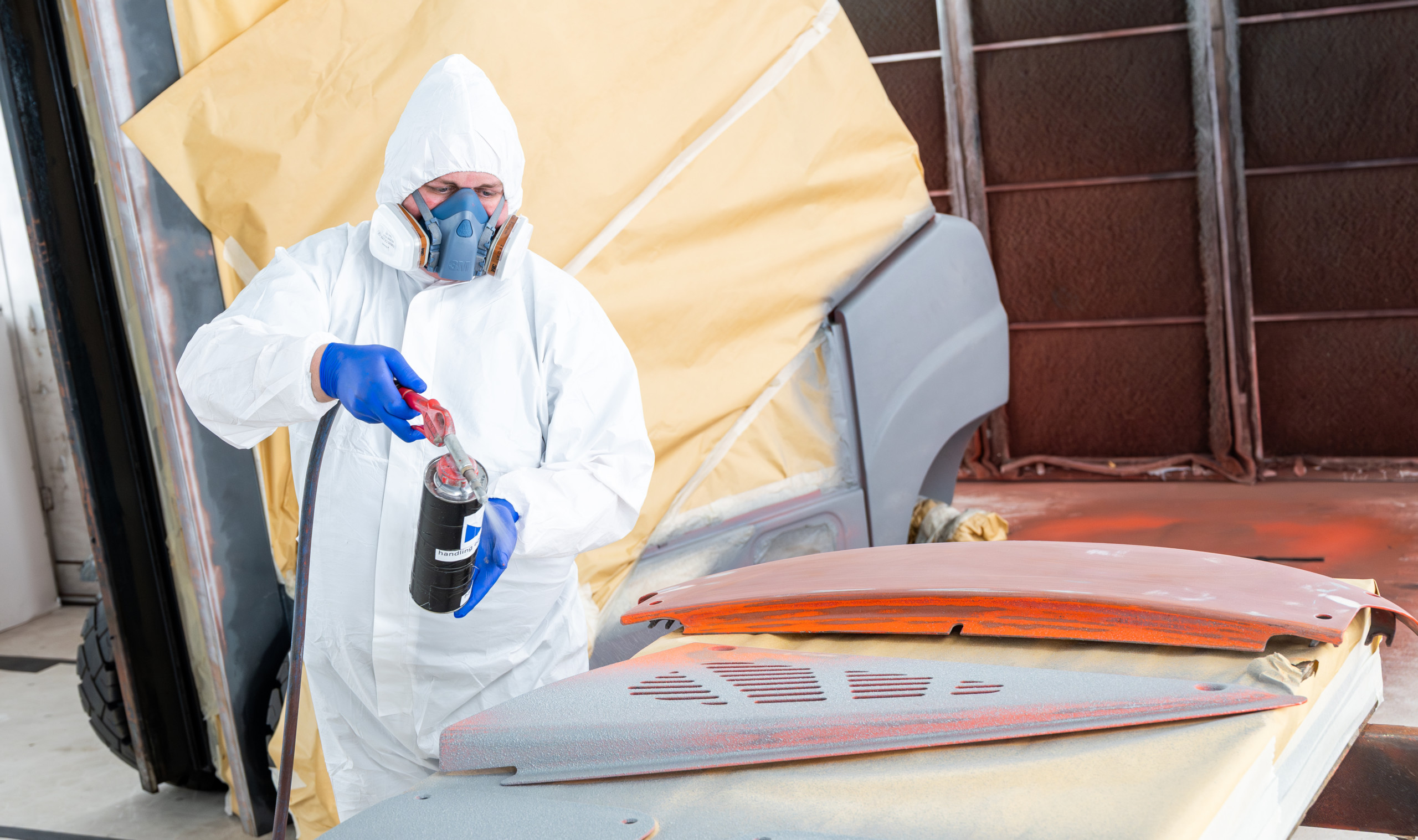 Spuiten van heftrucks & magazijntoestellen